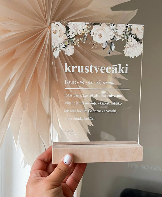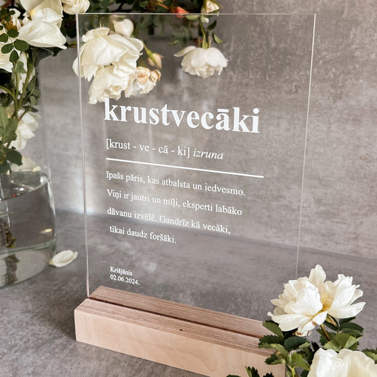 "KRUSTVECĀKI" PERSONALIZĒTS ORGANISKĀ STIKLA DEKORS KOKA STATĪVĀ€32,90 EUR/€30,00 EUR€32,90 EUR