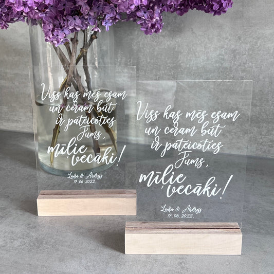 PATEICĪBAS DEKORS "VECĀKIEM" ORGANISKĀ STIKLA DEKORS KOKA STATĪVĀ€32,90 EUR/€30,00 EUR€32,90 EUR