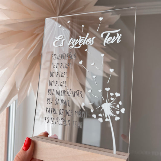 ORGANISKĀ STIKLA DEKORS "ES ATRADU TEVI..."€32,90 EUR/€30,00 EUR€32,90 EUR