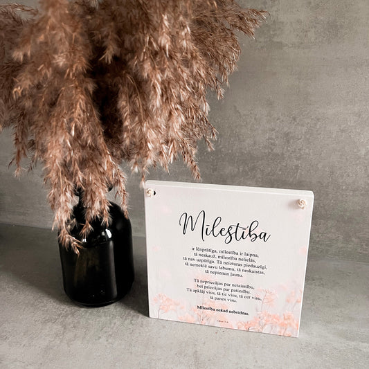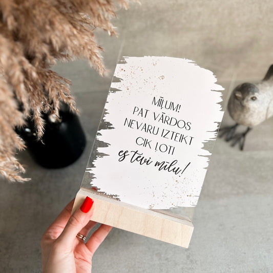 ORGANISKĀ STIKLA DEKORS "MĪĻUM! ES TEVI MĪLU" I MAIGI ROZĪGS FONS