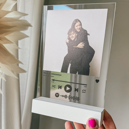 ORGANISKĀ STIKLA DEKORS "SPOTIFY" KOKA STATĪVĀ