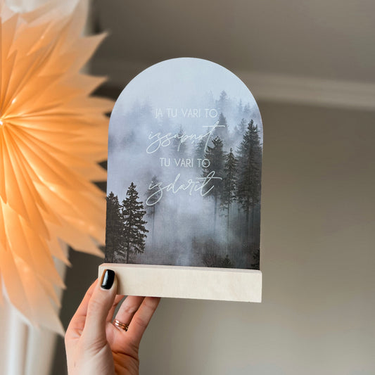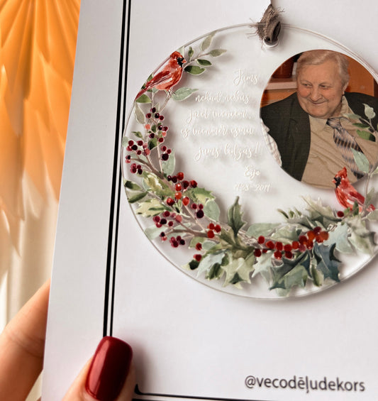 PATEICĪBAS DEKORS "VECĀKIEM" ORGANISKĀ STIKLA DEKORS BALTĀ KOKA STATĪVĀ