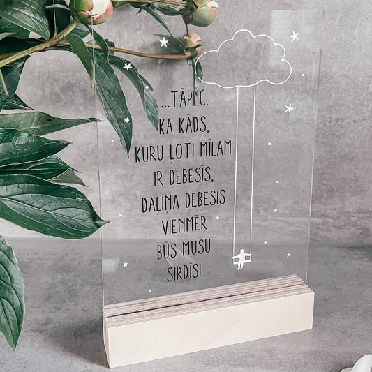 ORGANISKĀ STIKLA DEKORS "DAĻIŅA DEBESIS VIENMĒR BŪS MŪSU SIRDĪS" (VIŅAI)