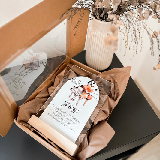 ORGANISKĀ STIKLA DEKORS KOKA STATĪVĀ "MŪZIKAS SKOLOTĀJAM"