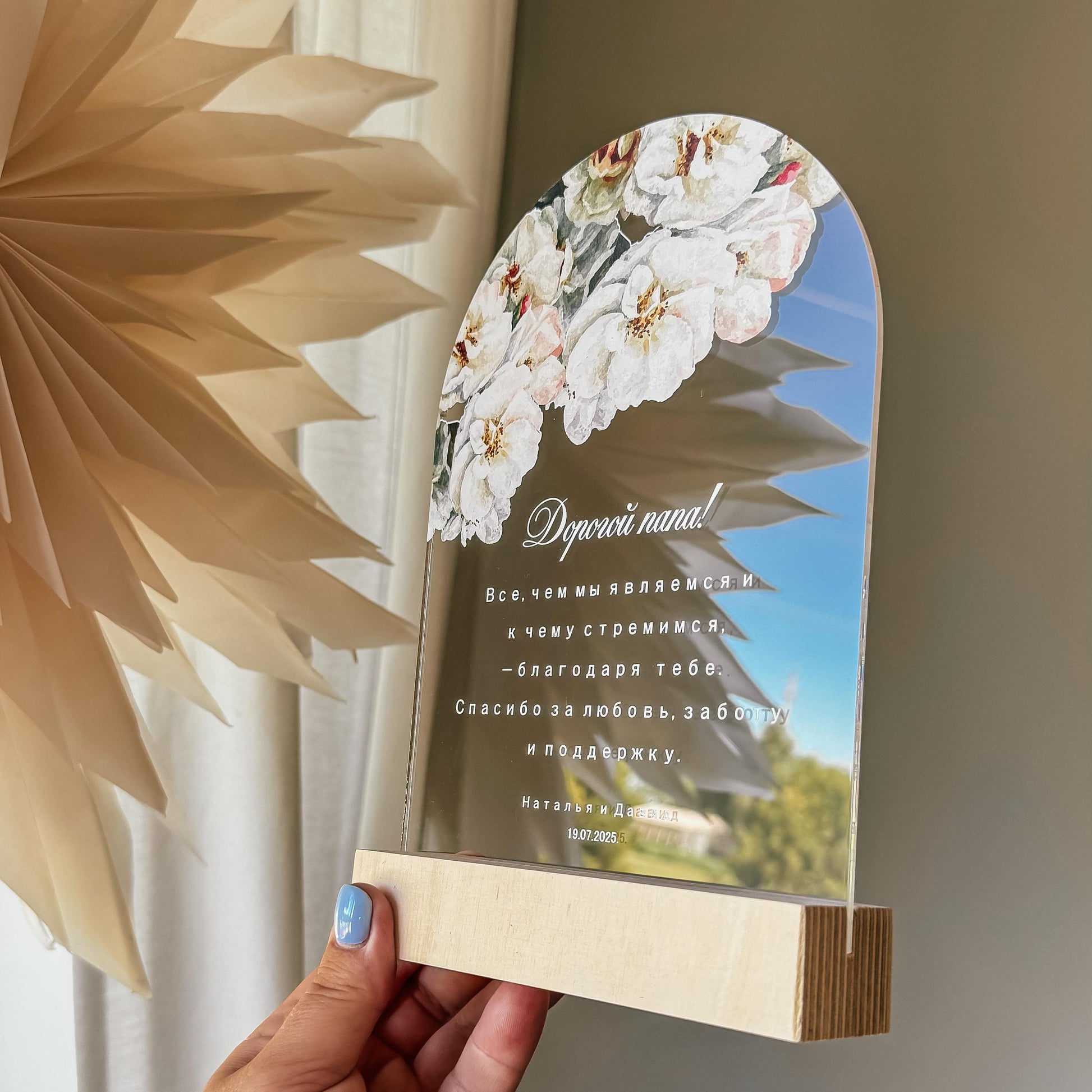 Personalizēts organiskā stikla dekors koka statīvā būs lieliska dāvana vecākiem ar pateicības vārdiem - par veltīto laiku, mīlestību, idejām un atbalstu!