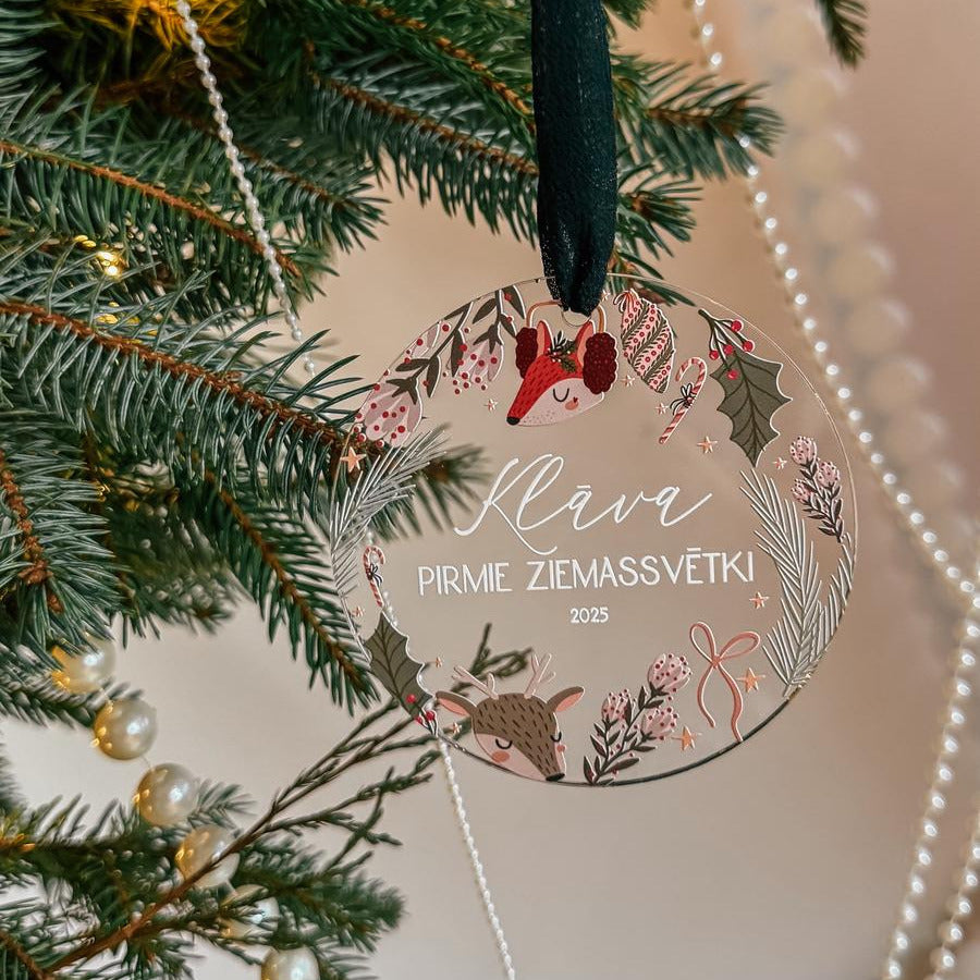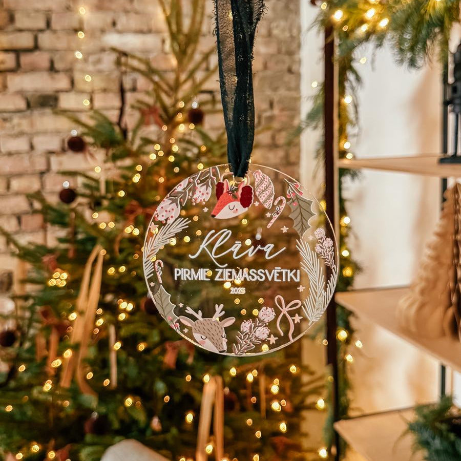 Caurspīdīgi, organiskā stikla eglīšu rotājumi ar personalizētu tekstu!