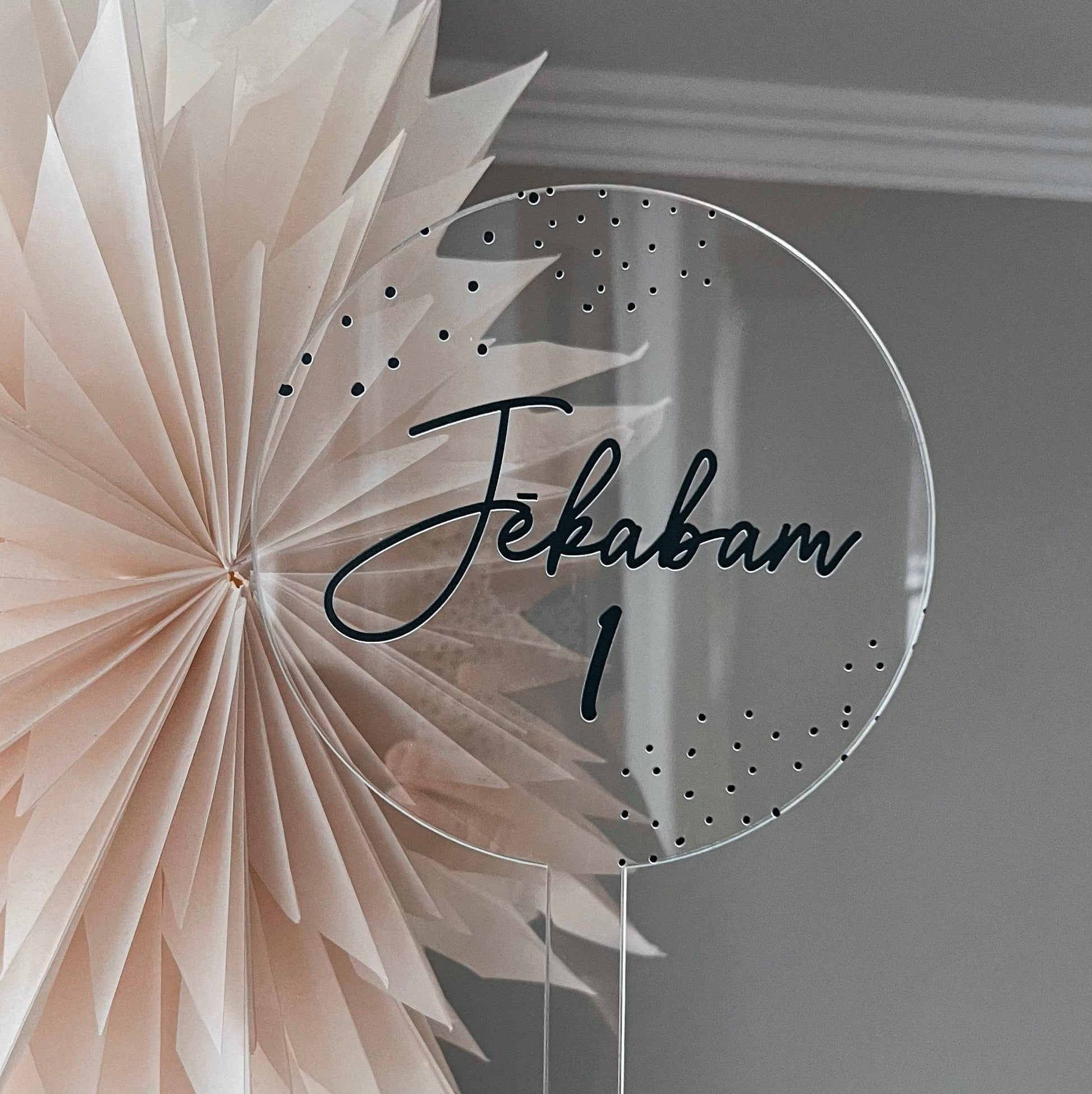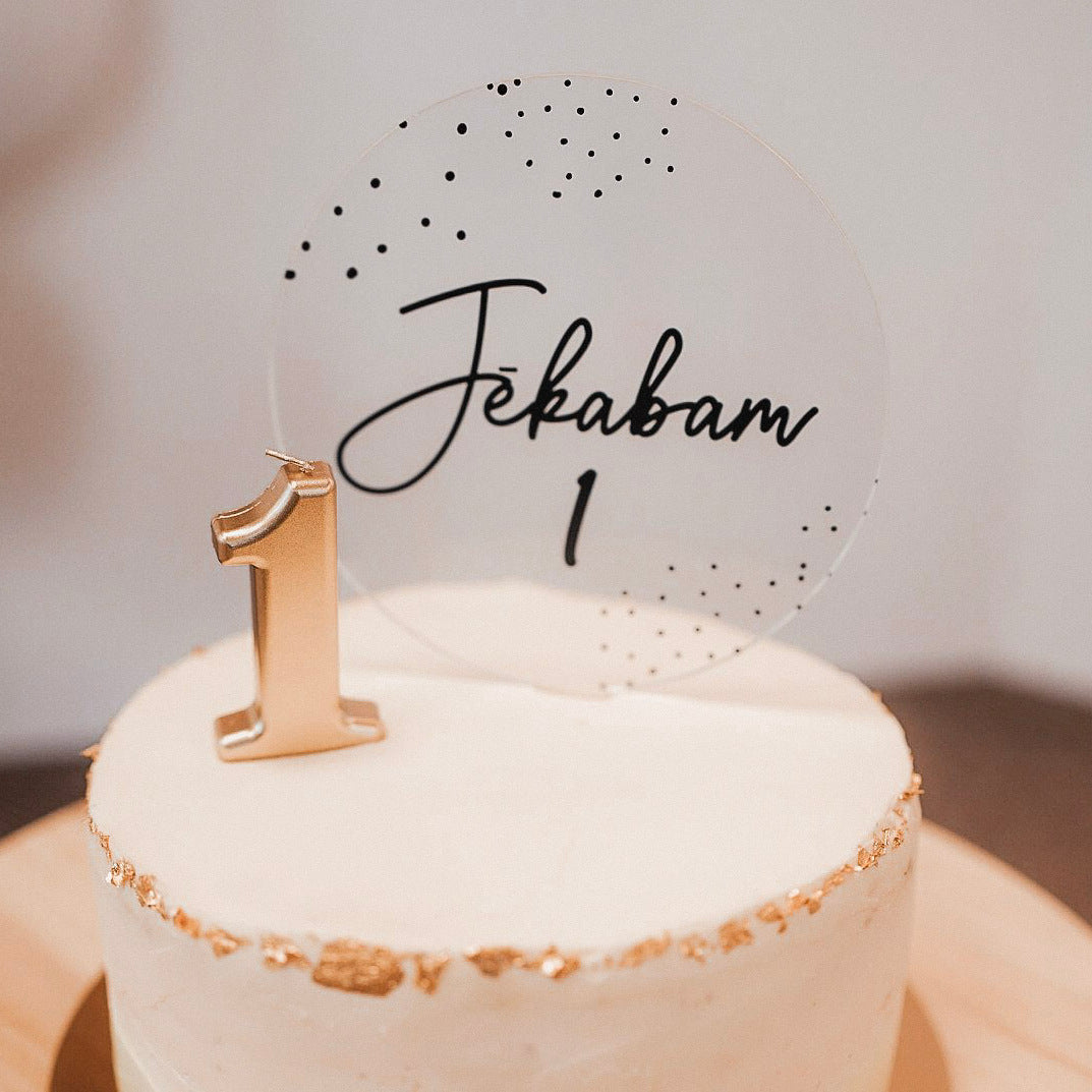 Organiskā stikla dekora diametrs 15 cm + 8 cm gara dekora kājiņa, lai varētu ērti un stabili iespraust dzimšanas dienas kūkā