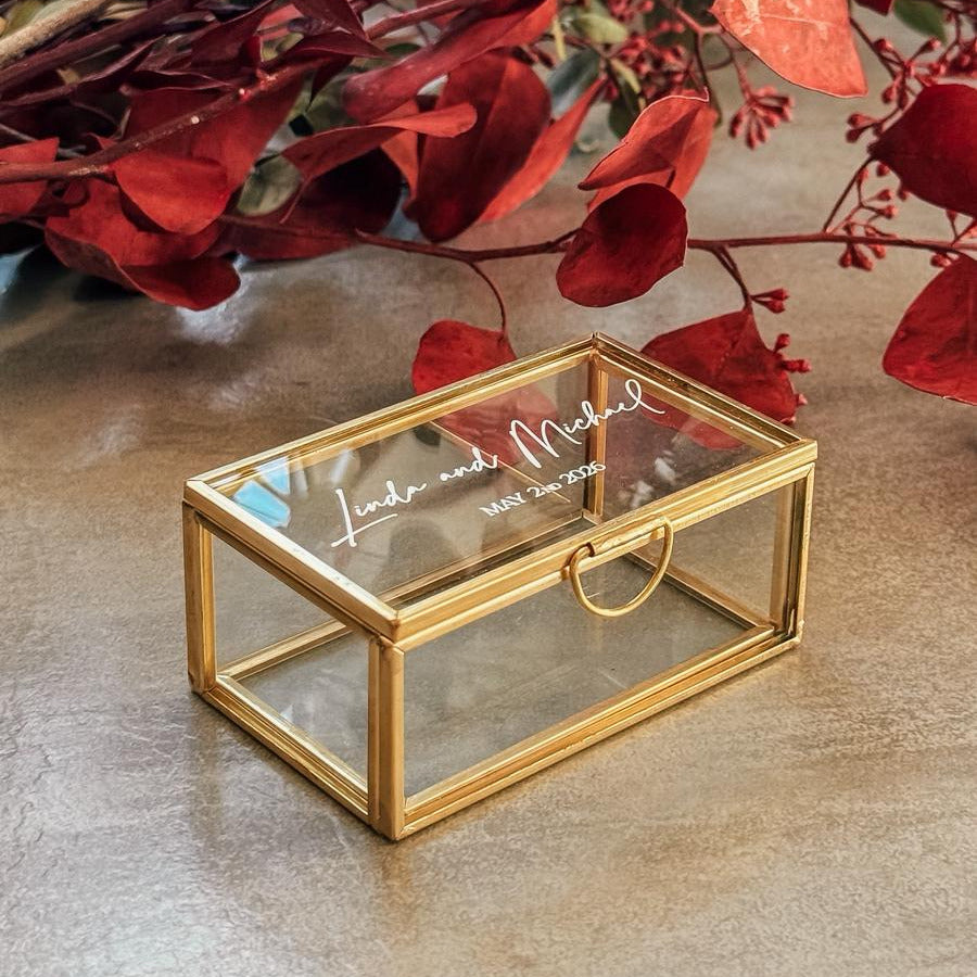 Eleganta stikla gredzenu kastīte – smalks un pārdomāts akcents Tavai kāzu dienai!