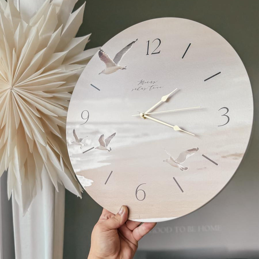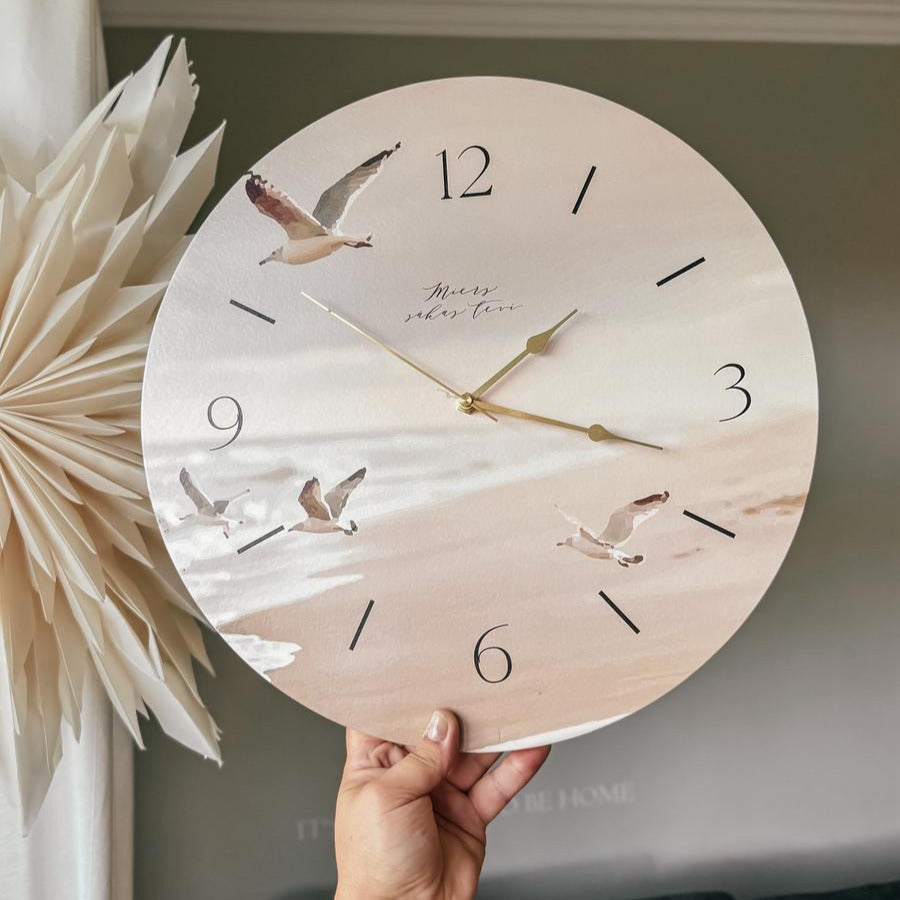 Sienas pulkstenis ar maigu jūras dizainu būs paliekoša un praktiska dāvana draudzenei vai kādam citam nozīmīgam cilvēkam, kuram vēlies veltīt šos vārdus, kurus atgādināt saspringtajā ikdienā.