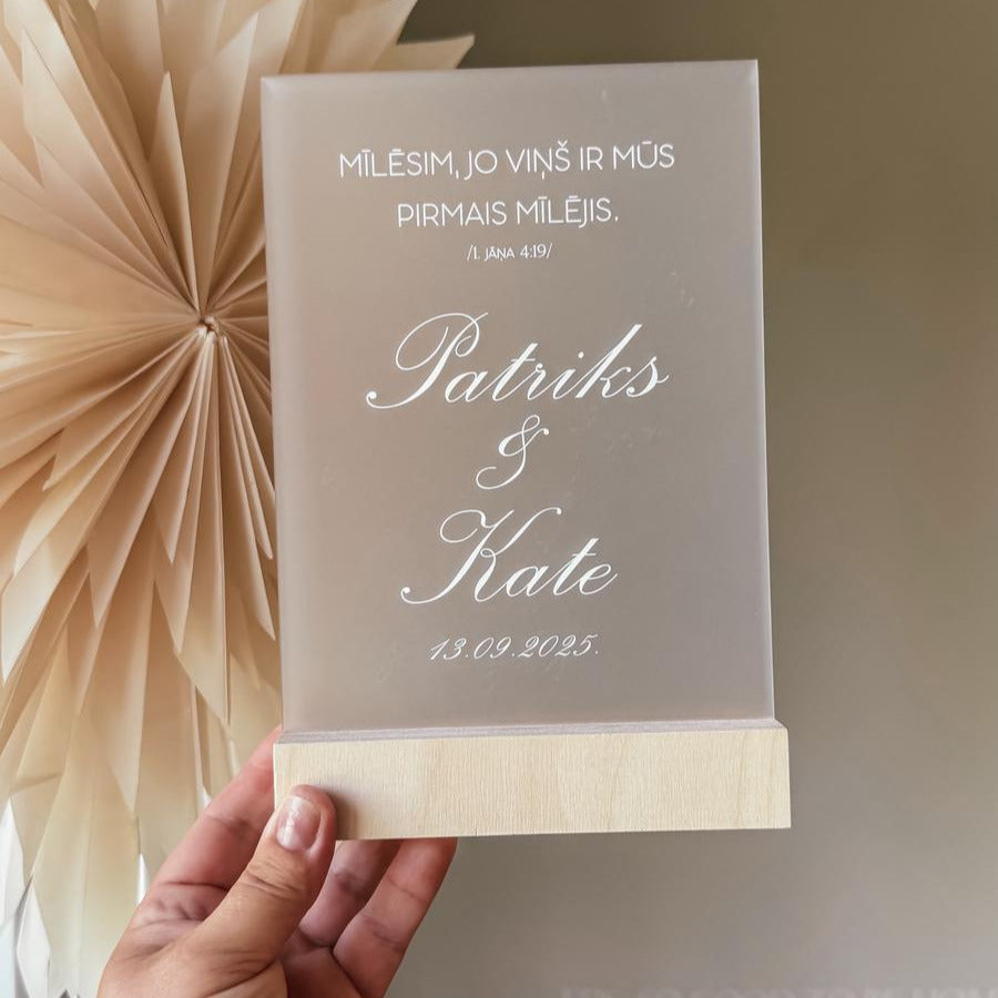 Paliekošs dekors no kāzu dienas ar pāra vārdiem, kāzu datumu un Bībeles pantu!