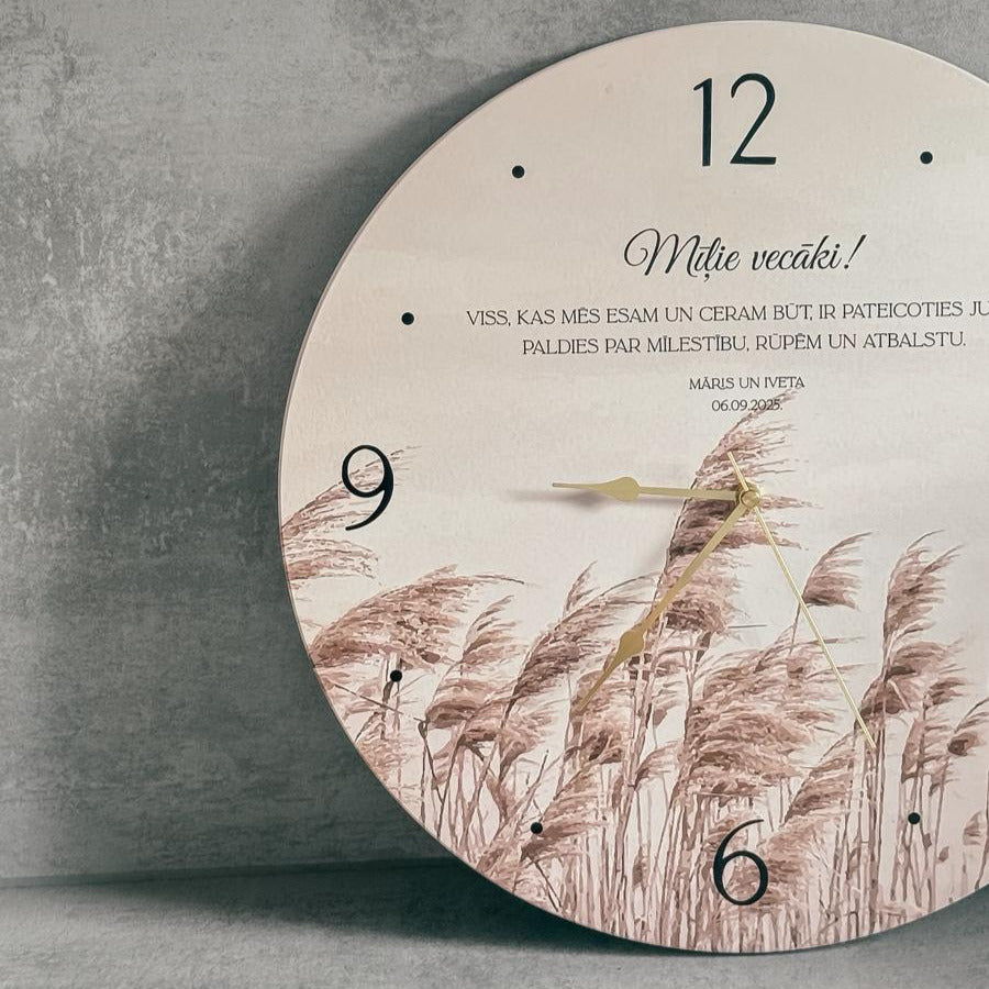 "MĪĻIE VECĀKI" KOKA, SIENAS PULKSTENIS AR SMILGĀM I DĀVANA KĀZU DIENĀ