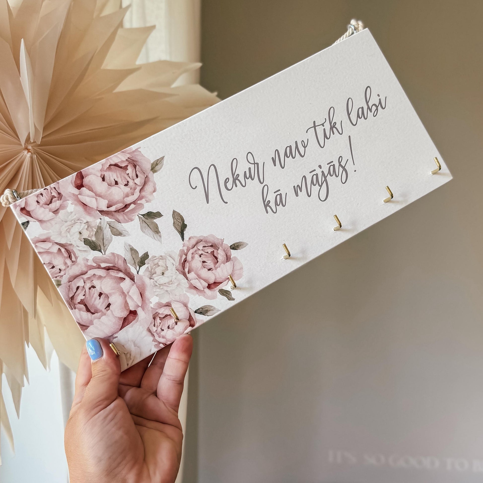 "NEKUR NAV TIK LABI KĀ MĀJĀS" DEKORS ATSLĒGĀM AR ROZĀ ZIEDIEM