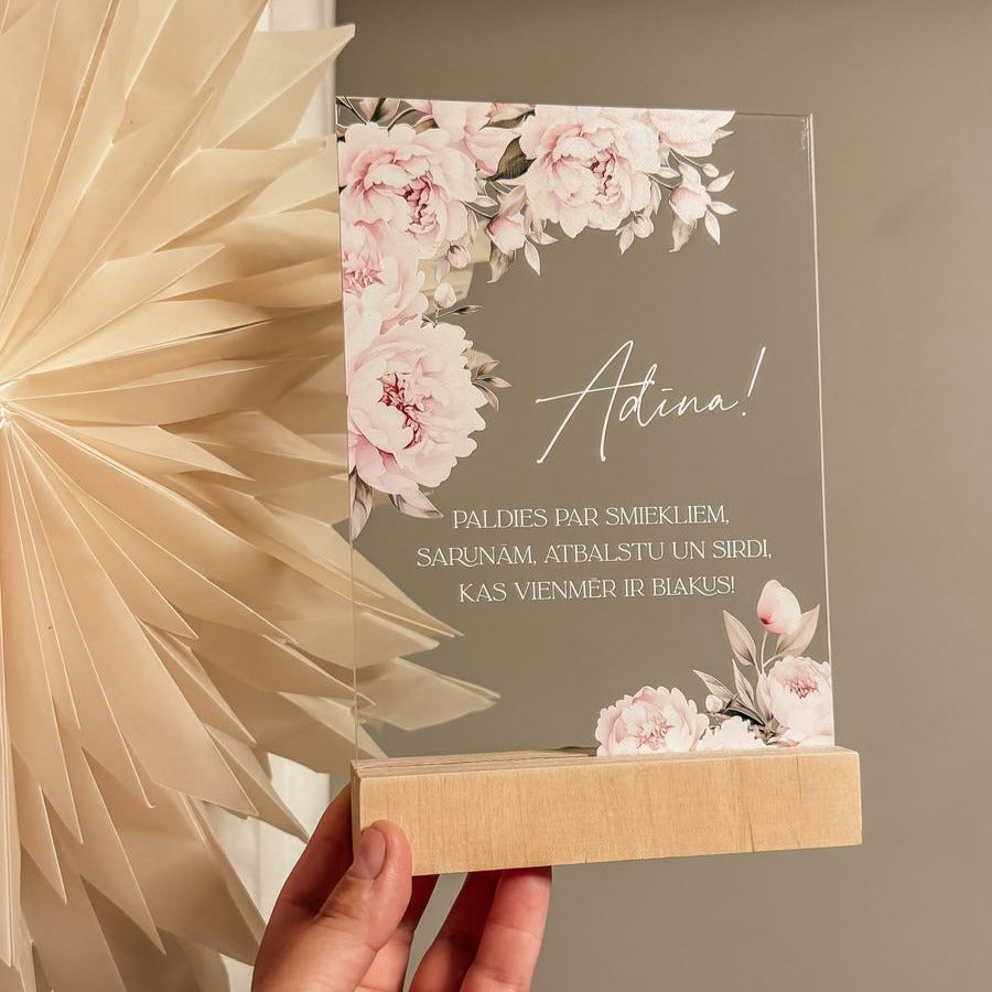 Dekora izmērs 15x21 cm + 2 cm koka statīvs (iekļauts komplektā)