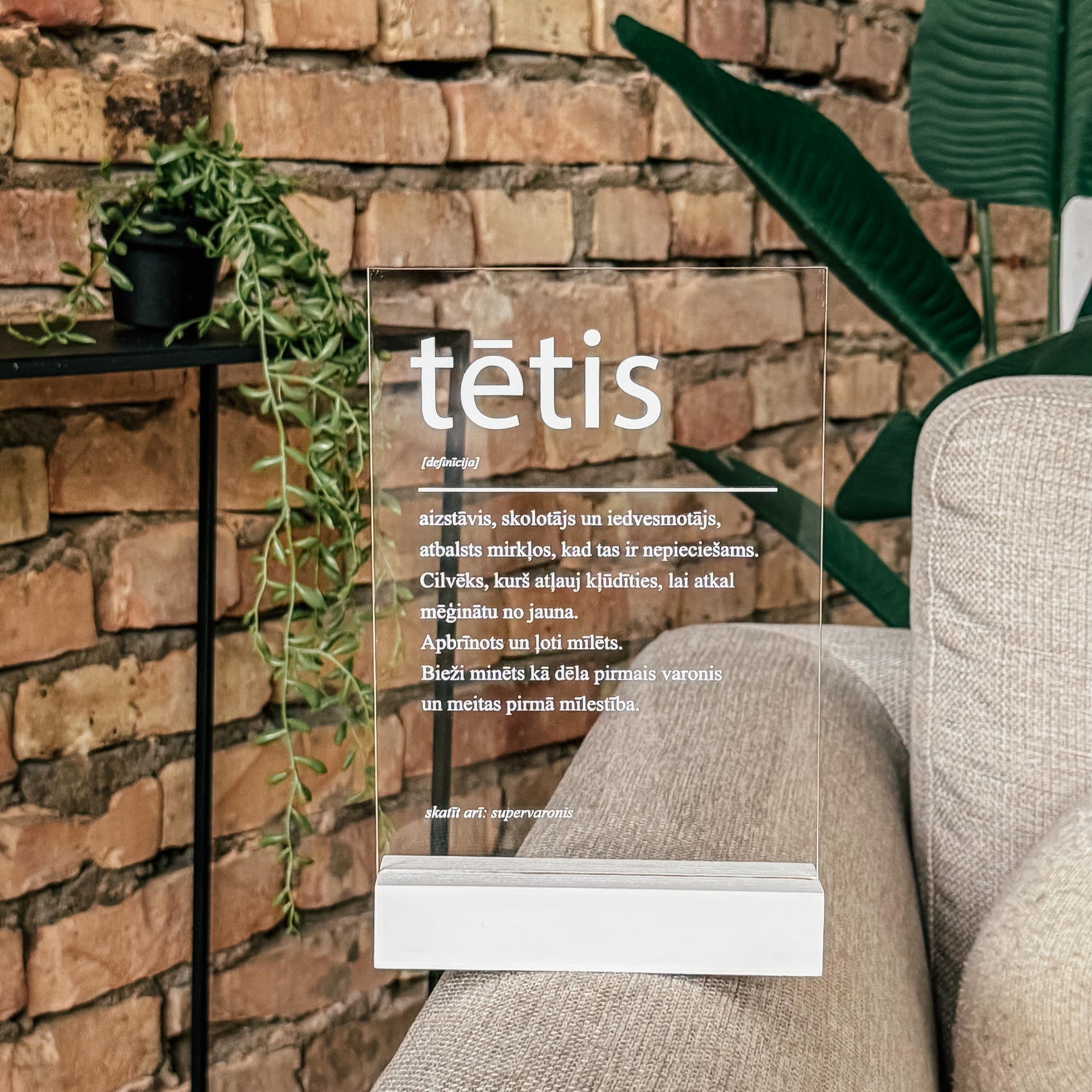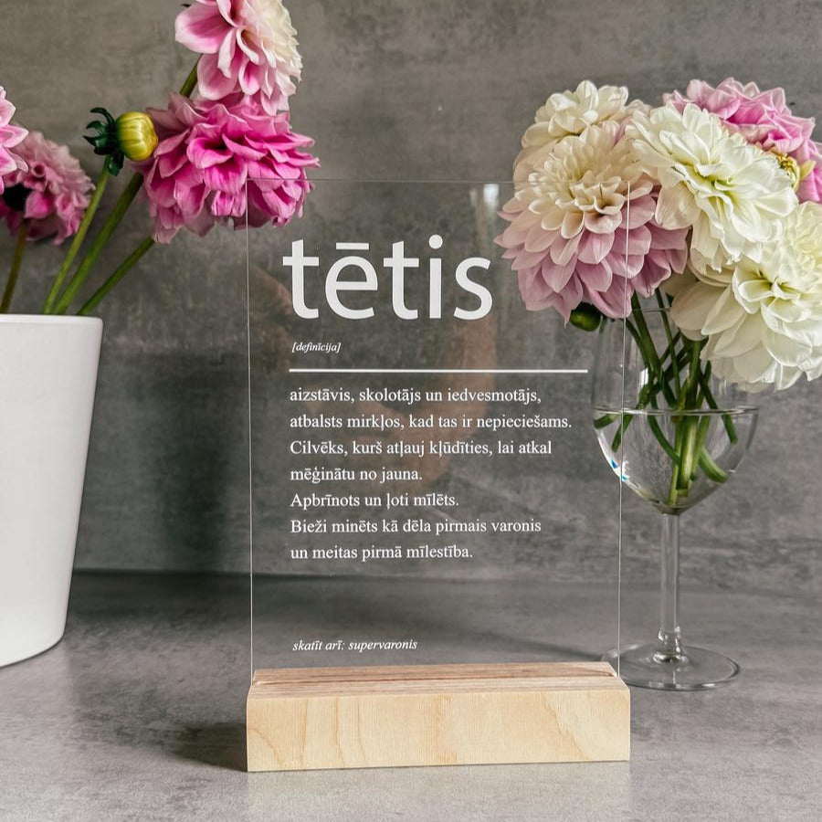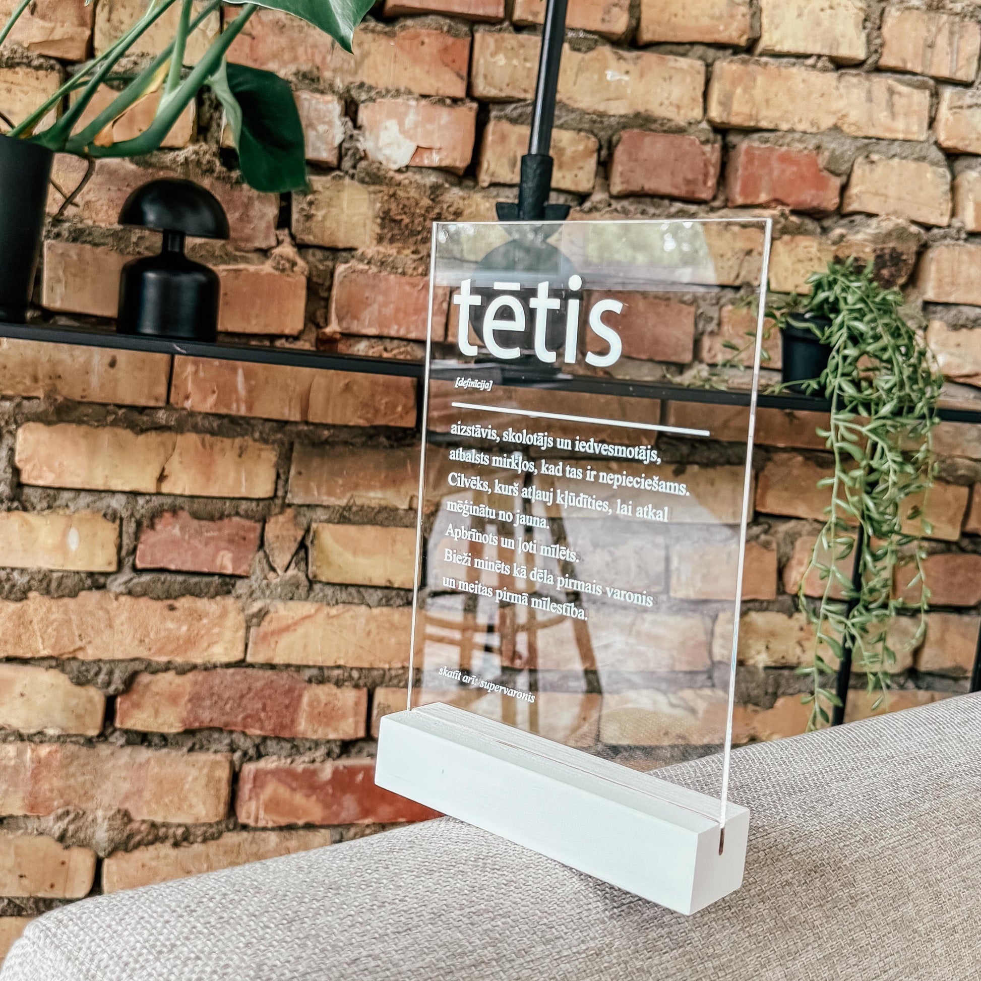 ORGANISKĀ STIKLA DEKORS "TĒTA DEFINĪCIJA" KOKA STATĪVĀ