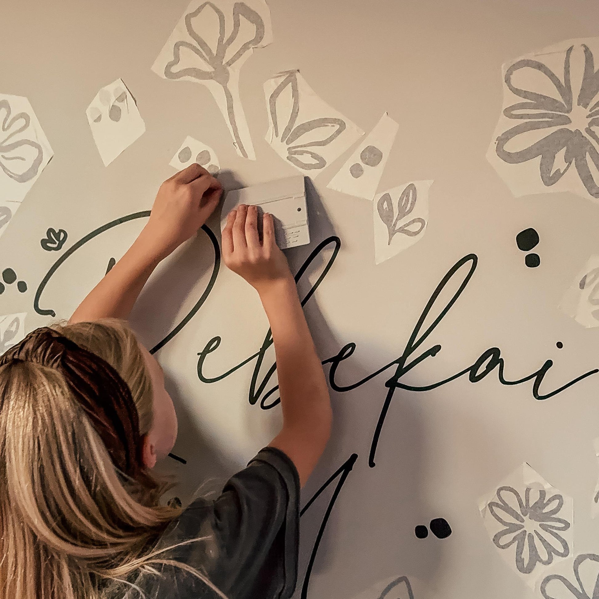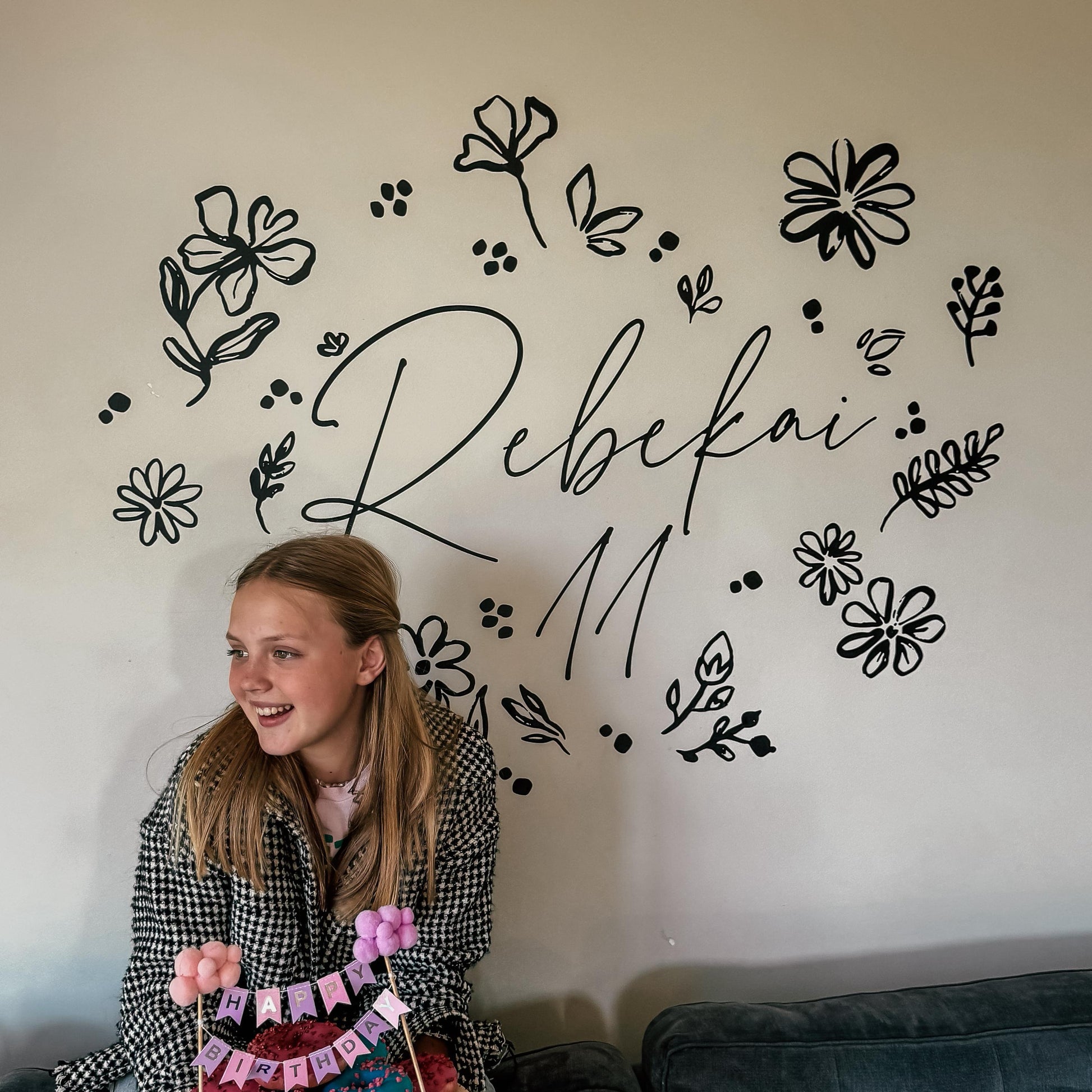 Šī ir lieliska ideja kā personalizēt gaidītos svētkus - sienas uzlīmes ar vārdiņu un cipariņu un "wild" ziediem lielākam efektam.
